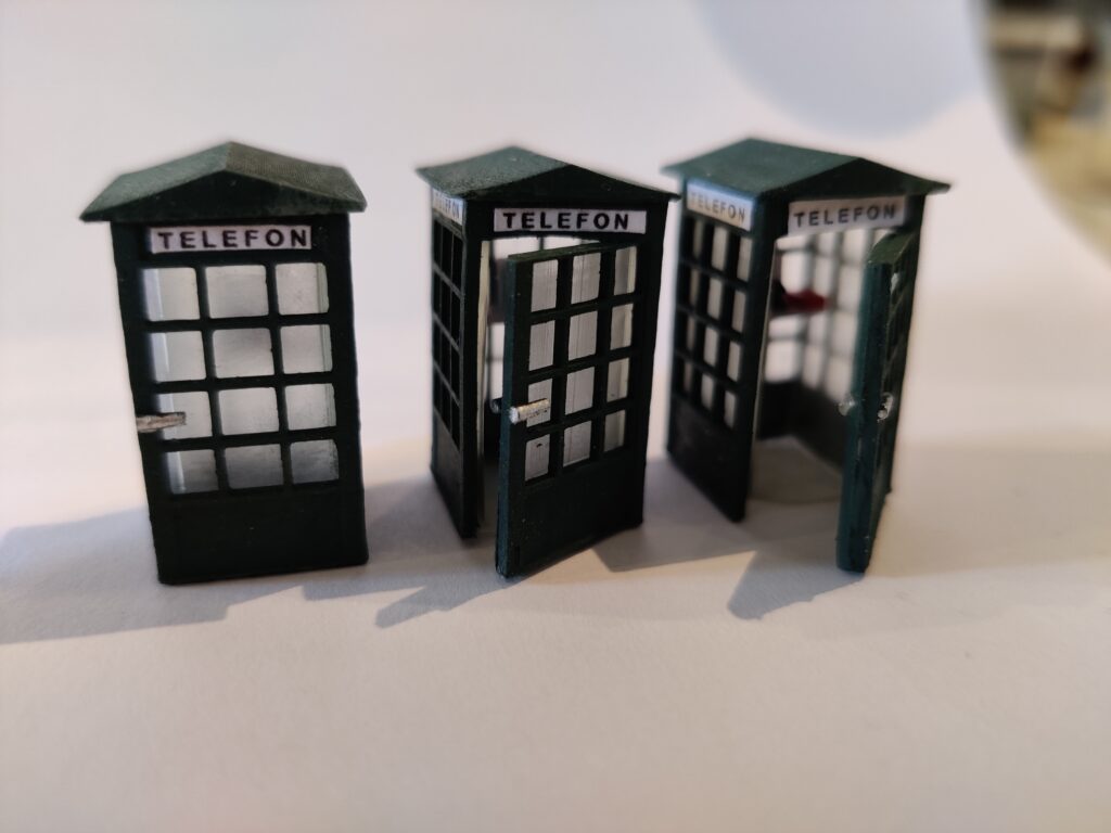 H0 Telefonbokse uden lys 80 kr, pr. stk. / med lys 120 kr. pr. stk